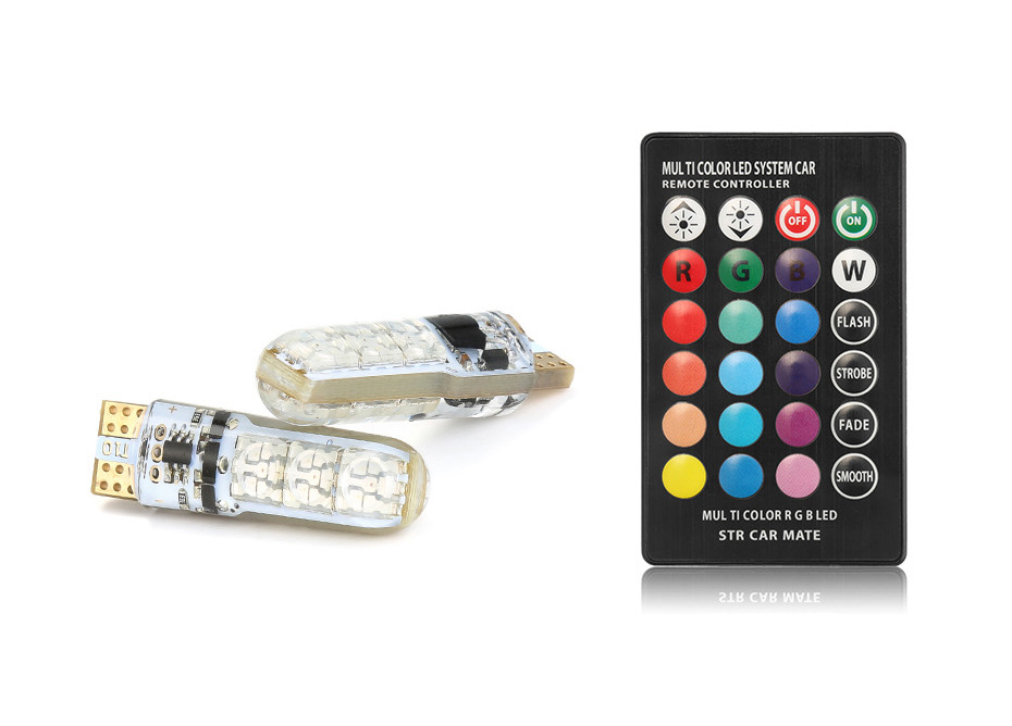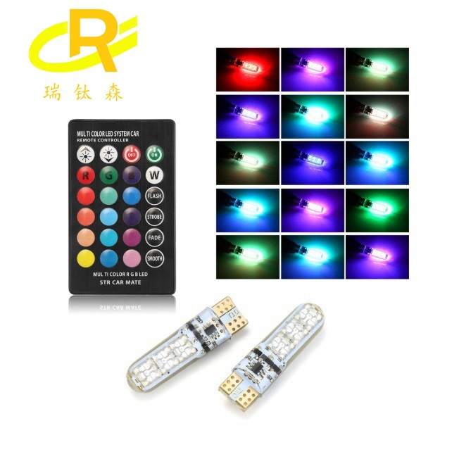 新款 RGB 带遥控 T10-6smd 5050硅胶 汽车示宽灯 爆闪灯 气氛灯 对装