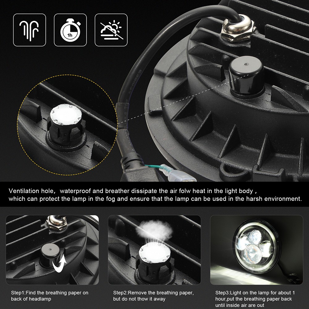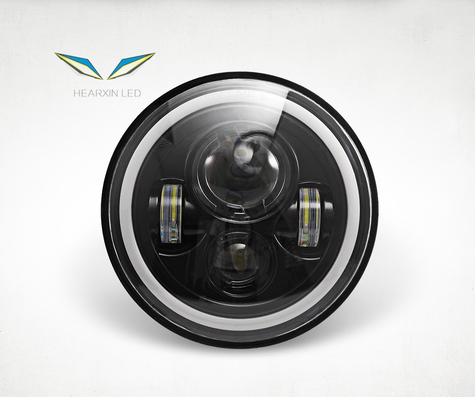 7" LED Headlights 60W High Low Beam LED H4 Halo Angel Eye DRL Amber Turn Signal for Jeep Wrangler JK TJ Land Rover Harley